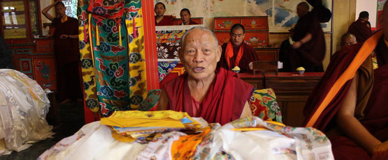Chagdzo Lama Tenam was presented with khataks from those present, as a mark of our gratitude and appreciation for his lifelong sincere service to Rinpoche.