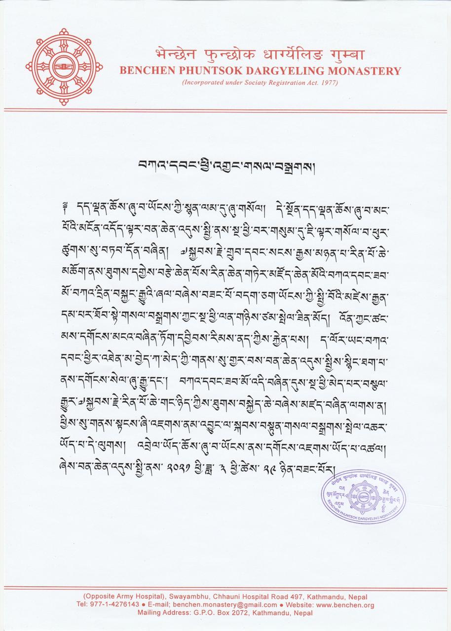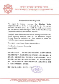 Benchen Monastery in Kathmandu has announced that due to the current pandemic situation around the world the Rinchen Terdzö Empowerment had to be re-postponed.