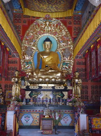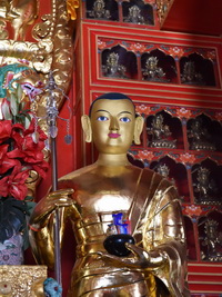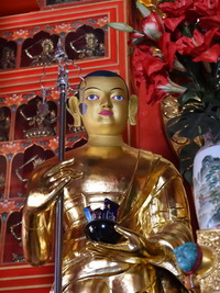 As we all remember, His Eminence Drubwang Sangye Nyenpa Rinpoche sponsored the great Buddha statue for our temple in Grabnik – its making and transportation to Poland, as well as performed its consecration. In his great kindness, in Autumn 2015, Rinpoche also promised to order in Nepal and send to Grabnik additional elements: ornaments for the granitic pedestal, canopy over Buddha’s head, brocade ornaments for the pillars and additional statues which should be placed next to Buddha: Shariputra and Maudgalyayana – presented as standing monks. Both statues are about two metres high. They will look exactly like those from Benchen Shedra (pictures below).