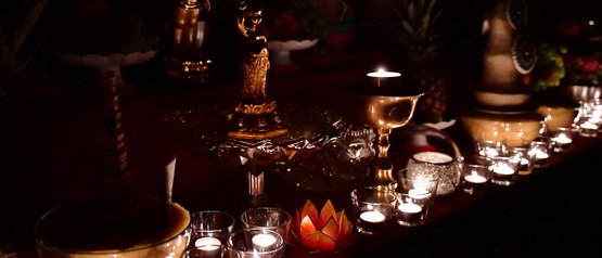 На третий день, по традиции, состоялась цок-пуджа, в этом году это была практика Миларепы. Как обычно, третий день завершила молитва к Ченрезику и подношение зажженых свечей (Марме монлам). И именно в момент завершения молитв, неподалеку ударила молния и начался ливень, поэтому свечи мы установили не так как обычно вокруг ступы, а внутри храма, у стоп большой статуи Будды. Снаружи бушевала гроза, какой мы уже давно не видели. И еще долгое время, ночное небо освещали молнии одна за другой. Мы расценили это как очень благоприятный знак.