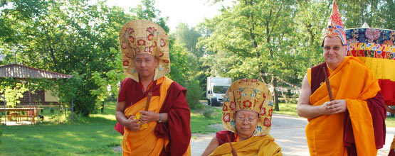 Tenga Rinpocze (pośrodku), po lewej Sangter Rinpocze, po prawej Lama Rinczen