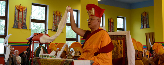Tegoroczne Kagju Mynlam było pierwszą ceremonią, jaka odbyła się u stóp naszego nowego wielkiego posągu Buddy. Modlitwom przewodził Jego Eminencja Drubłang Sangje Njenpa Rinpocze. Każdego dnia mieliśmy możność słuchać wspaniałych wykładów Rinpoczego i modlić się w jego inspirującej obecności, a w drugi dzień Mynlamu Rinpocze udzielił abhiszeki Czarnego Dzambali.