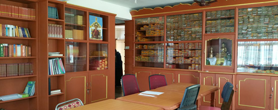 Nowy, przestronny lokal otrzymała bliblioteka. Oprócz dużej ilości regałów na zbiory książek i tekstów, znalazły się tu także stanowiska do opracowywania i nagrywania wykładów Dharmy oraz do wpisywania na komputerze tybetańskich tekstów.